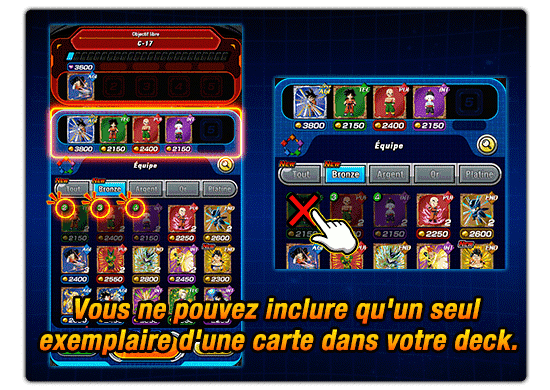 Les Cartes qui ne peuvent pas être incluses dans l'équipe