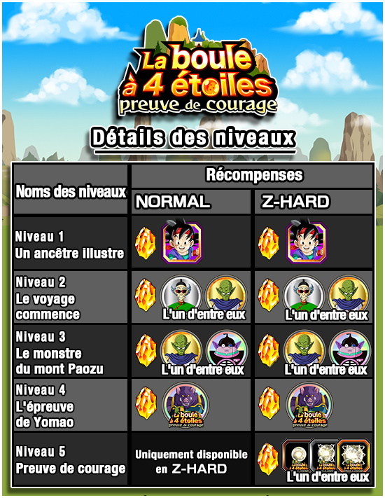 * Dans le niveau 1, uniquement Son Goku (GT) sera disponible