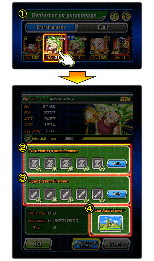 Pour entraîner un personnage, veuillez procéder comme suit :