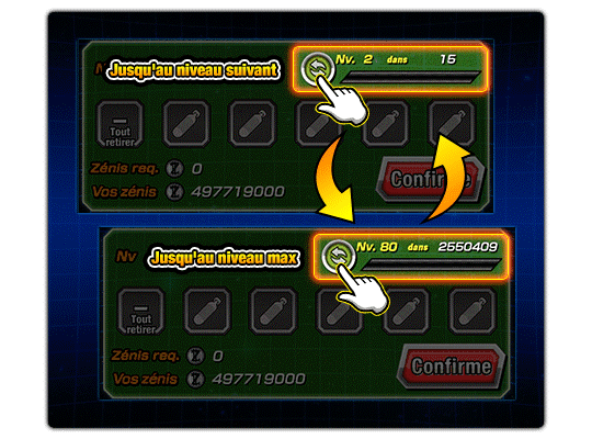 la quantité de zénis nécessaire varie en fonction du type