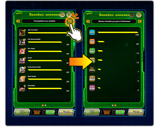 "Participations aux combats" et les "Niveaux terminés
