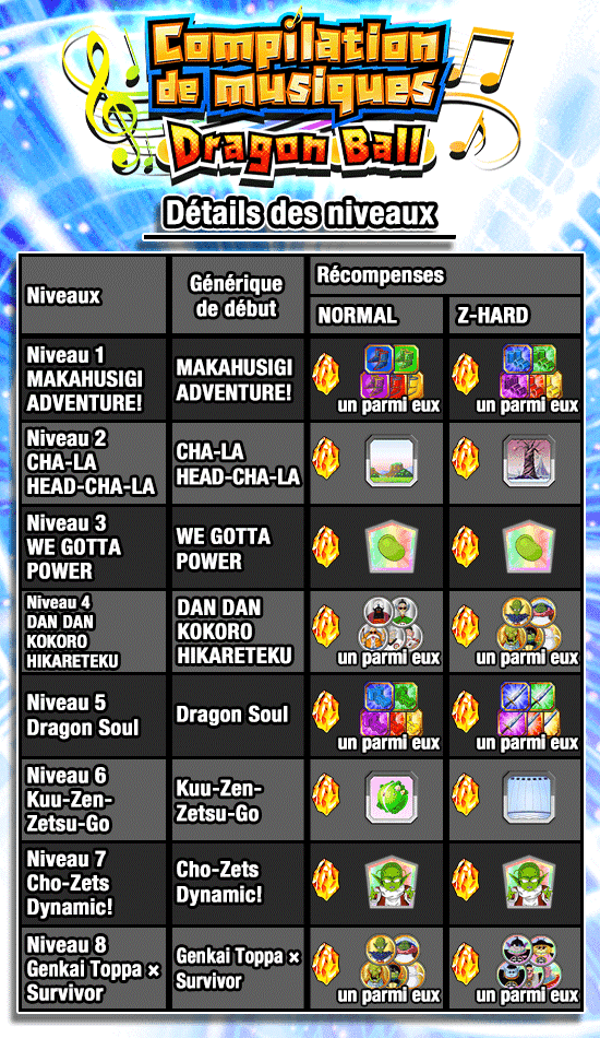 de début de l'anime "Dragon Ball Z" sont aussi à obtenir !