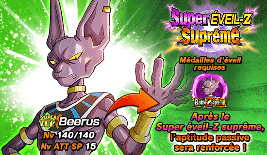 Vous pouvez obtenir la médaille d'éveil "Beerus [SUPER]"