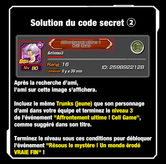 Le message caché derrière ce joueur est :Tentez le niveau 3 de l'événement "Affrontement ultime !