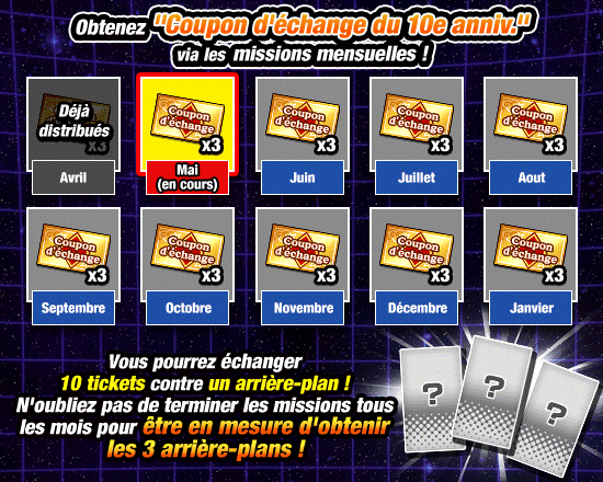 Collectez tous les "Coupon d'échange du 10e anniv." disponibles