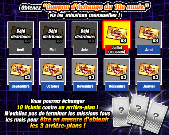 Collectez tous les "Coupon d'échange du 10e anniv." disponibles