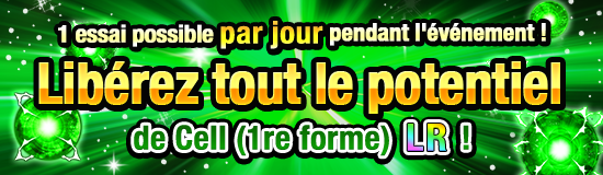 Éveille le perso désigné jusqu'à la rareté LREffectue l'éveil Dokkan de [Un monstre mystérieux] Cell (1re forme), recruté dans l'événement Combat éminent "Une menace qui approche silencieusement", jusqu'à la rareté LR et obtiens [Être haineux et destructeur] Cell (1re forme) ! {cards:card_id:1017330,1017331,1017341}