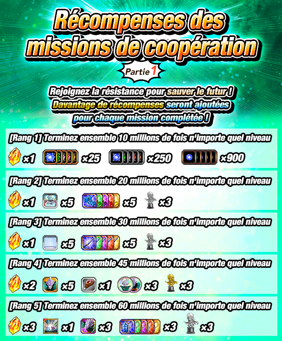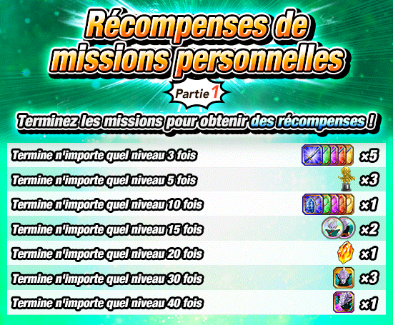 * Les récompenses des missions personnelles seront envoyées