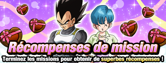 Termine toutes les missions quotidiennes de "Aventures de la Saint-Valentin ! Missions collecte de chocolats". Cette mission commence tous les jours à 16:00, du 07/02 au 13/02 PST ! Il te suffit de la réussir et de récupérer ta récompense avant 15:59 PST du jour d'après.