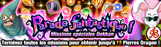 Parade fantastique ! Missions spéciales Dokkan en cours ! Terminez les missions pour obtenir des Pierres Dragon et d'autres récompenses !