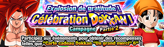 Explosion de gratitude ! Célébration Dokkan ! Campagne partie 2 en cours ! Récupérez de belles récompenses via le bonus de connexion et les missions !