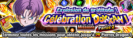 "Explosion de gratitude ! Célébration Dokkan ! Missions partie 2" disponibles ! Terminez-les toutes pour obtenir des Pierres Dragon et d'autres belles récompenses !